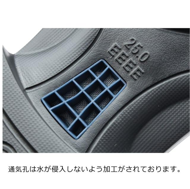 アウトソールには通気口を設置して靴内環境を整える工夫をしております。