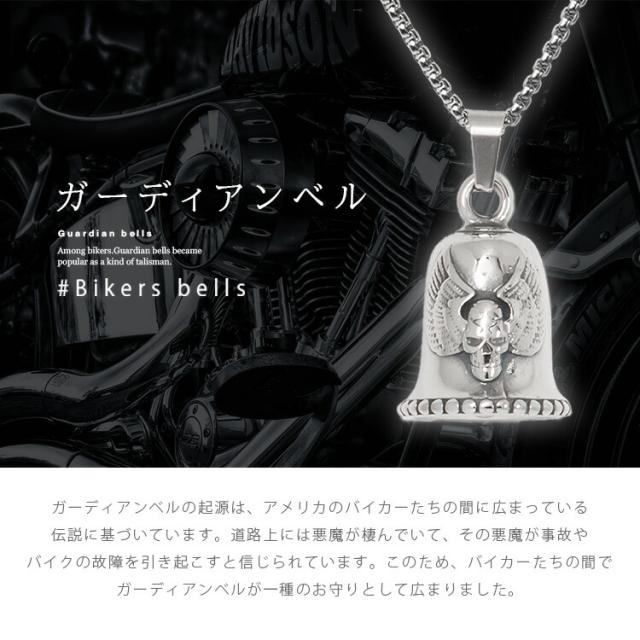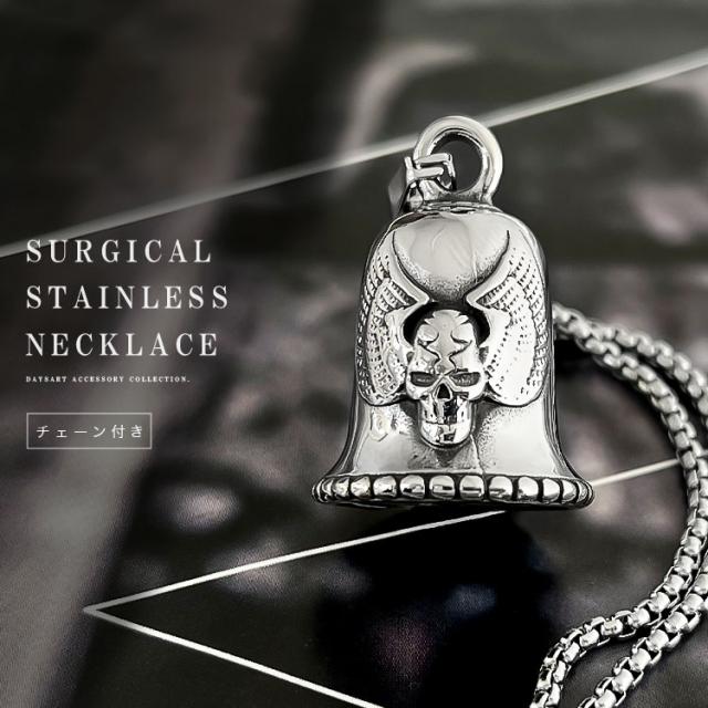 ステンレスペンダント ネックレス メンズ レディース ペンダントトップ サージカルステンレス ベル スカル ウィング ブランド おしゃれ トップ バイカー ガーディアンベル チェーン付き シルバー ab-sn025
