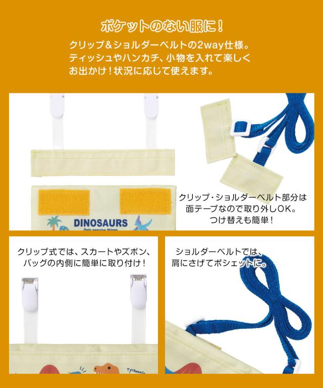 移動ポケット ショルダー クリップ 2way キッズ ポケット 男の子 女の子 付けポケット お出かけ 幼稚園 保育園 小学校 ミニバッグ ポケットティッシュ入れ ポケットポーチ ミニポーチ 女子 便利 小物入れ 外出 恐竜 ユニコーン ODKP2