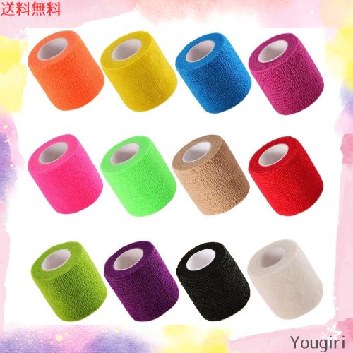 仕様: アイテム:自己粘着包帯 素材:柔らかく弾力性のある不織布 サイズ:5cm*4.5m 色:黒、肌色、黄、紫、水色、草緑、明るいピンク、明るいオレンジ、明るい緑、白、赤、ピンク 数量:12個