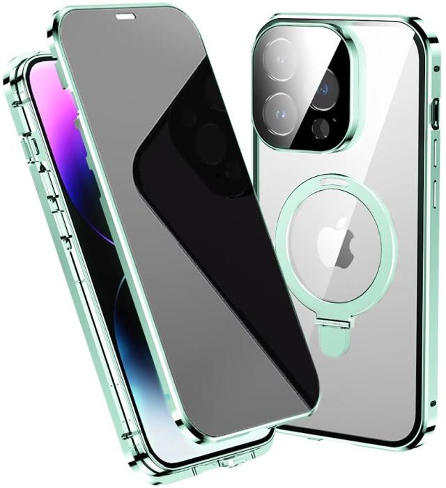 i Phone 用 ケース 覗き見防止 i Phone 15 Plus ケース MagSafe対応 ワイヤレス充電対応 全面カバー リング付き スタンド機能 一体型レンズ保護 iphone 15 Plus カバー ロック式 両面ケースマグネット式 強化ガラス アイフォン15plus クリア ケース