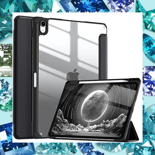 Maledan iPad air 第5世代 ケース 2022 アクリル 透明カバー 10.9インチ カバー ペンシル収納ホルダー付き PUレーザー 開閉式 三つ折り