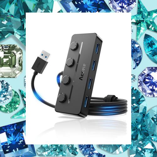 Aceele USB ハブ 5 USB ポート USB 3.0 ウルトラスリム ハブ ????-? 給電用ポート 独立スイッチ付き 上差込タイプ ???表示灯 ????? 延長