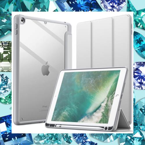 JEDirect iPad 9.7インチ ケース(第6/5世代、2018/2017モデル用)Pencil収納可能透明バックカバー 薄型 スタンド 衝撃吸収 タブレットカ