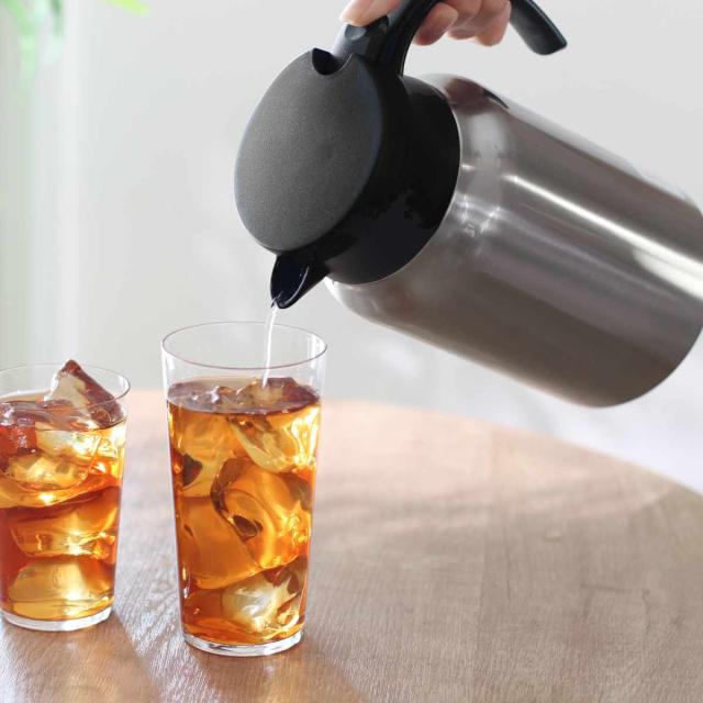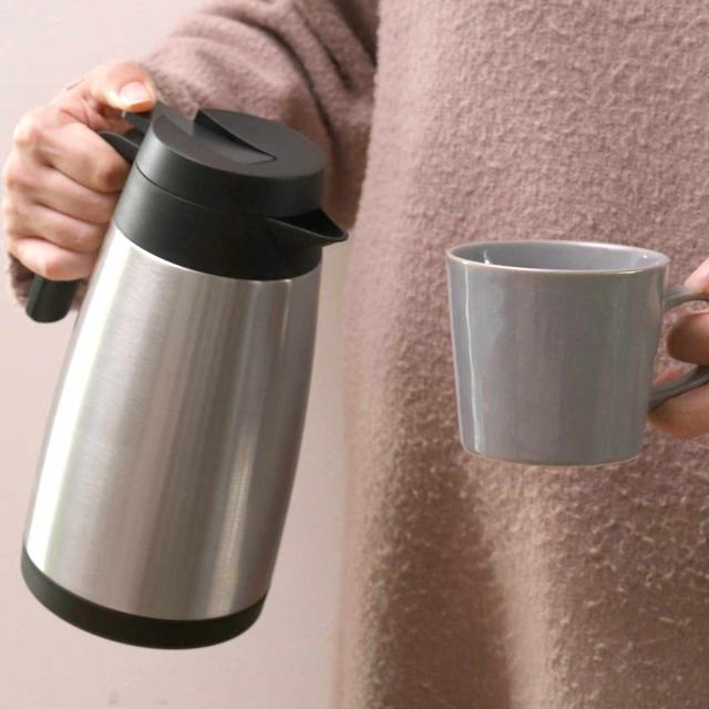 飲み物の温度をしっかりキープできる真空二重構造のテーブルポットです。お友達や家族が集まる場面でも大活躍のサイズです。電気を使わず保温・保冷のどちらにも対応します。丈夫で長持ちするステンレス製です。