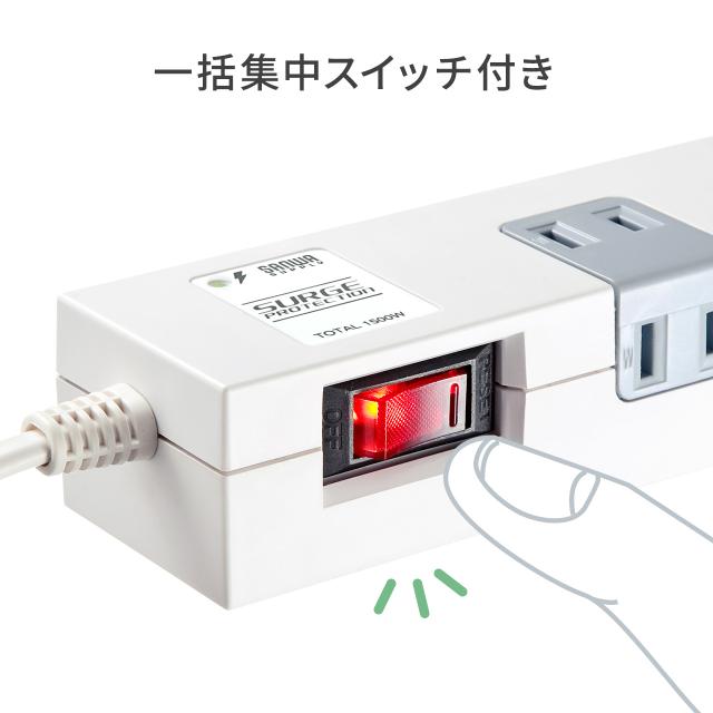 ●一括集中スイッチ付きで、接続した機器の電源をまとめてON・OFFできます。