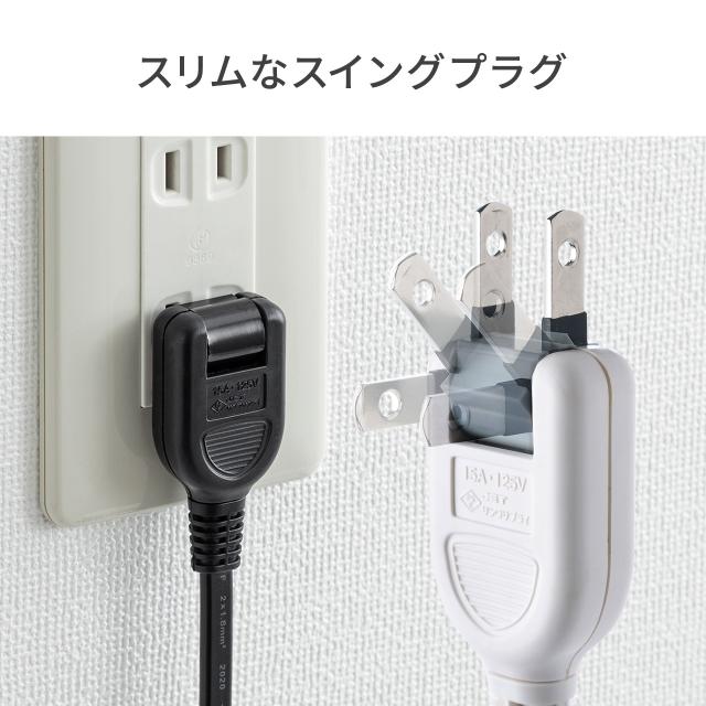 ●コンセントに差したときに出っ張りが少ないスイングプラグを採用しています。