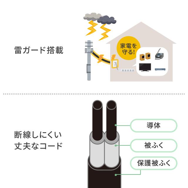 ●内蔵されたサージ吸収素子(バリスタ)が雷サージを吸収し、接続機器を守ります。