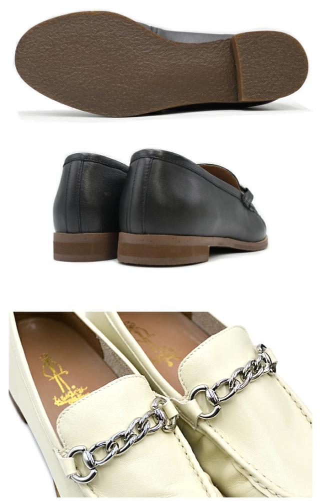 見た目にもやわらかそうなチェーンローファー。ソフトなモカシンをイメージした、気負わず履けるユースフルなアイテムです。 裏地を付けずソフトに仕立てた足あたりのよさが魅力。肉厚のクッションインソールによるふかふかとした履き心地もポイント。