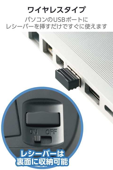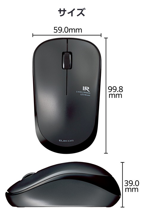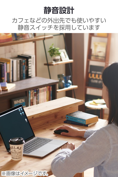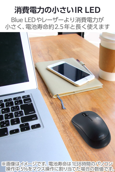 サイレントスイッチ採用で、音が気になる場所でも静かに使える!約2.5年電池交換不要の赤外線LEDを使用したワイヤレスIR LEDマウスの静音モデル。![]() ■左右ボタンとホイールボタンにサイレントスイッチを採用し、しっかりとした押し心地がありながらクリックのカチカチ音が気にならず、静かに使用できるワイヤレスマウスです。 ■消費電力の小さな赤外線LEDを使用したIR LEDマウスです。 ■Blue LEDやレーザーを使用したマウスよりも消費電力が小さいため、約2.5年間電池を取り替えずに使用することが可能です。 ■2.4GHz帯を採用したワイヤレスタイプで、非磁性体で約10m、スチールデスクなど磁性体上でも約3mの範囲で使用可能です。(当社調べ) ■ノートパソコンのUSBポートに接続しても気にならず、装着したまま持ち運び可能な1円玉サイズのマイクロレシーバを採用しています。 ■レシーバはマウス本体内に収納可能なので、持ち運びに便利で、レシーバを紛失する心配を軽減します。 ■スムーズな操作を実現する分解能1200カウントです。 ■左右対称で持ち方を選ばないシンメトリーデザインを採用しています。 ■本体裏面に電源スイッチがあり、不使用時の電池の消耗を防止できます。 ![]() ■インターフェース:USB ■コネクター形状:USB-Aプラグ ■対応機種:USBポートを装備したWindows OS、macOS搭載機 ■分解能:1200カウント ■通信方式:GFSK方式 ■電波周波数:2.4GHz帯 ■電波到達距離:磁性体(鉄の机など)の上で使用する場合:3m、非磁性体(木の机など)の上で使用する場合:10m ■読み取り方式:光学センサー方式 ■射出光線種類:不可視波長域 ■ボタン数:3個 ※ホイールボタン含む ■ホイール数:1個 ■レシーバー収納:○ ■連続動作時間:約500時間 ■連続待機時間:約1041日 ■想定電池使用期間:約905日 ※1日8時間のパソコン操作中5%をマウス操作に割り当てた場合 ■電源(本体):単3形アルカリ乾電池、単3形マンガン乾電池、単3形ニッケル水素電池のいずれか1本 ■定格電圧(本体):1.5V ■カラー:ブラック ■外形寸法(マウス本体):幅59.0mm×奥行99.8mm×高さ39.0mm ■重量(マウス本体):約52g ※電池を含まず ■外形寸法(レシーバー):幅18.0mm×奥行13.1mm×高さ5.7mm ■重量(レシーバー):約2g ■付属品:動作確認用単3形アルカリ乾電池×1、ユーザーズマニュアル×1 ■保証期間:6カ月間 ■LED色:不可視光(赤外線) ■対応OS(Windows):Windows 11/10/RT8.1/8.1/7(SP1)/Vista(SP2)/XP(SP3) ■対応OS(macOS):macOS Catalina(10.15) ■サイズ分類:Mサイズ |