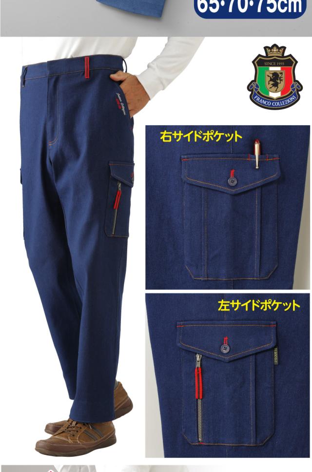 カーゴパンツ デニム フランコ・コレツィオーニ メンズ ズボン ストレッチ 動きやすい 2色組 選べる股下 インディゴ ソフトブルー 3L おしゃれ 紳士用