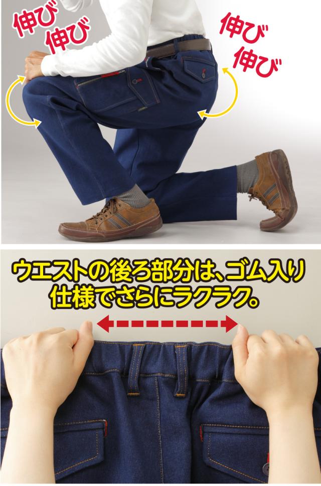 ●ウエストの後ろ部分は、ゴム入り仕様でさらにラクラク。