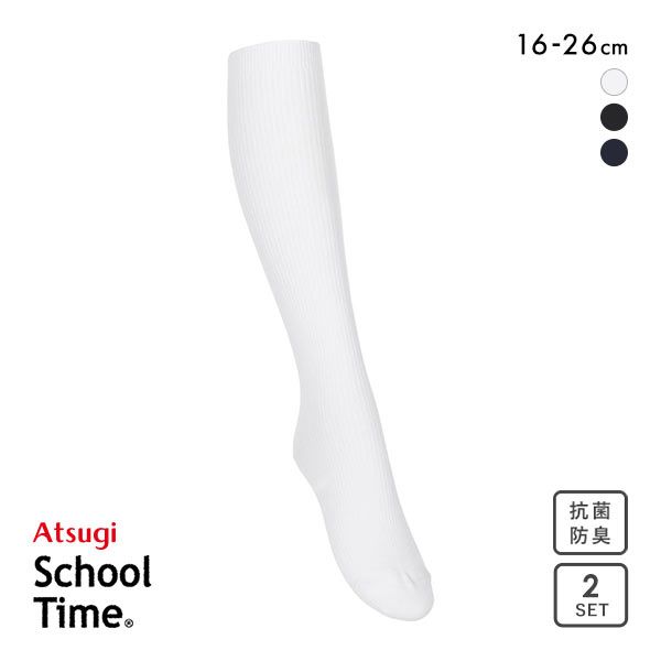 アツギ ATSUGI スクールタイム ハイソックス リブソックス キッズ ジュニア 2足組 靴下 綿混 学生 16-26cm