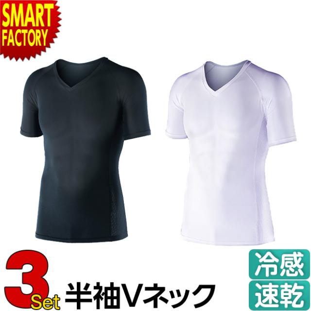 シャツ 3枚セット インナー メンズ 半袖 Vネック 接触冷感 吸汗速乾 UVカット