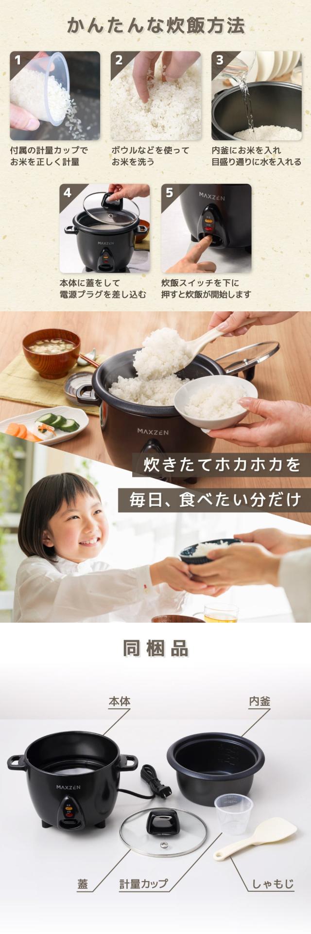 1合から炊けていつでも炊きたてのおいしいご飯が楽しめます。