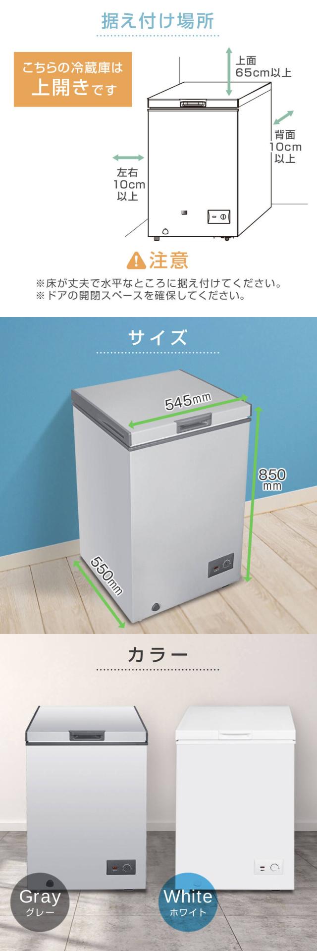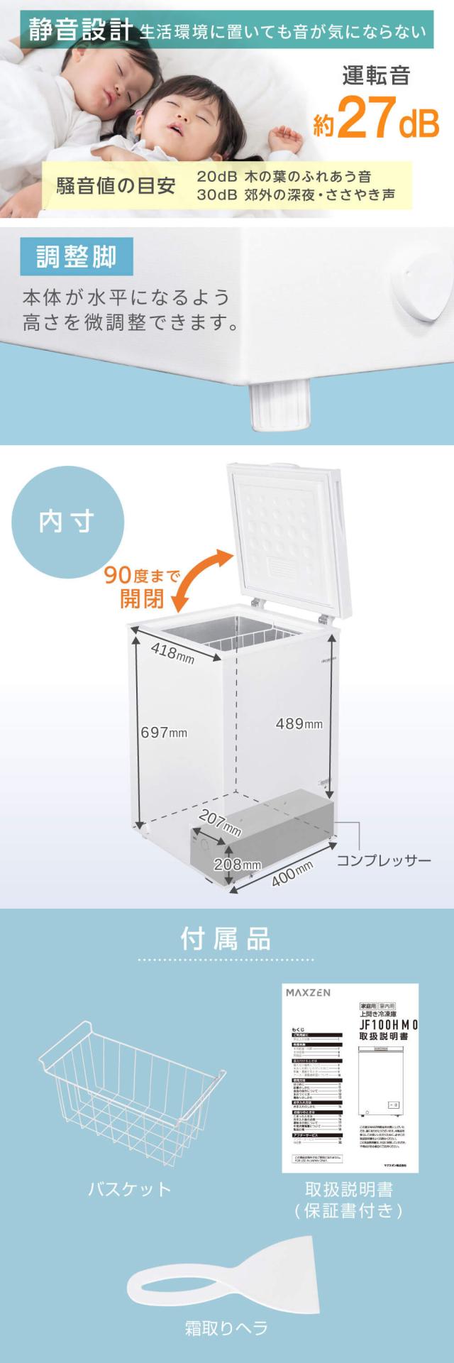 冷凍庫 家庭用 100L 上開き 小型 静音 大容量 省エネ ひとり暮らし 一人 暮らし 温度調整 冷凍ストック まとめ買い 冷凍食品 節電 グレー JF100HM01GR マクスゼン