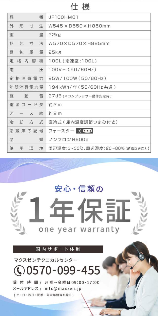 * 冷却方式:直冷式(庫内温度調節つまみ付き)