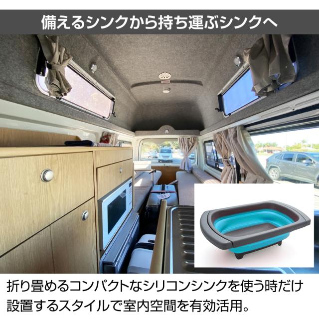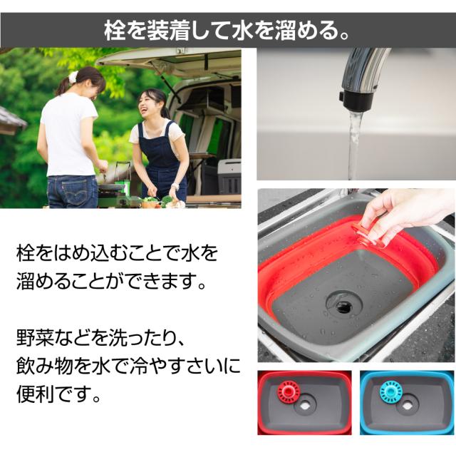 広がる取っ手付きの排水機能付き簡易シンク! 車中泊グッズ キャンプ BBQ