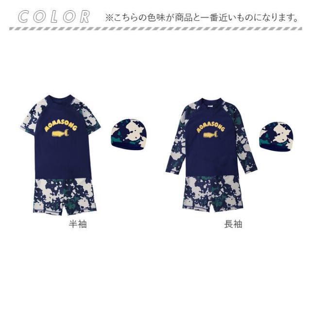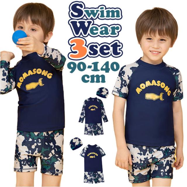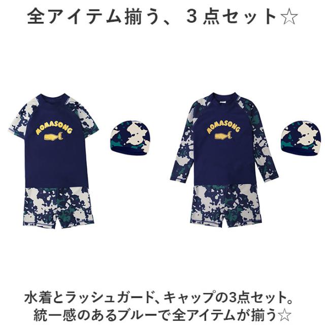水着 キッズ男の子 通販 3点セット 長袖 短袖 半袖 ラッシュガード スイムキャップ キャップ 上下セパレート 半ズボン ハーフパンツ 紫外線対策 日焼け対策 ジュニア プール 海 温泉