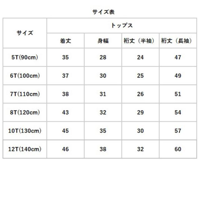 | サイズ | [キッズ] ・5T(90cm) ・6T(100cm) ・7T(110cm) ・8T(120cm) ・10T(130cm) ・12T(140cm) ※サイズについて詳細は、商品画像の中にあるサイズ表をご覧くださいませ。 |