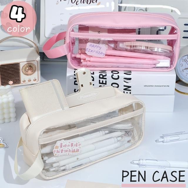 ペンケース 筆箱 子供 学生 大人 女の子 男の子 筆入れ 筆記用具入れ 文房具入れ 透明 クリア 中身が見える 取っ手付き 大