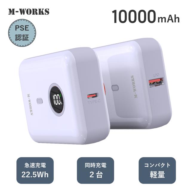M-WORKS モバイルバッテリー 急速充電 10000mAh PD QC 3A出力 2台同時充電 大容量 小型 軽量 コンパクト 充電器 TYPE-C USB スマートフォン タブレット PSE認証済 iPhone iPad Android