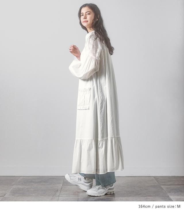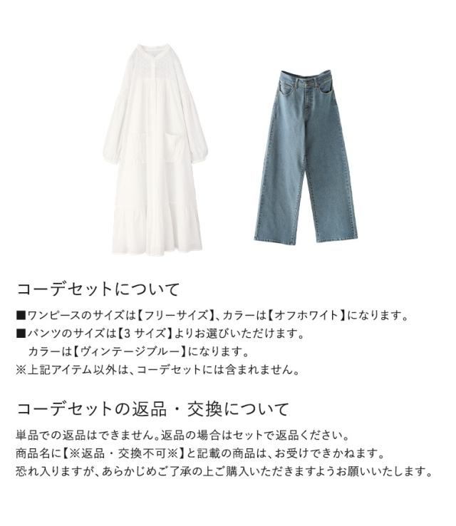 【送料無料】『ティアードワンピ×ワイドデニムコーデ2点SET』【メール便不可】【30】[2点コーデセット 2024 レディース ワンピース ロング丈 長袖 コットンレース ワイドパンツ デニム ストレート]