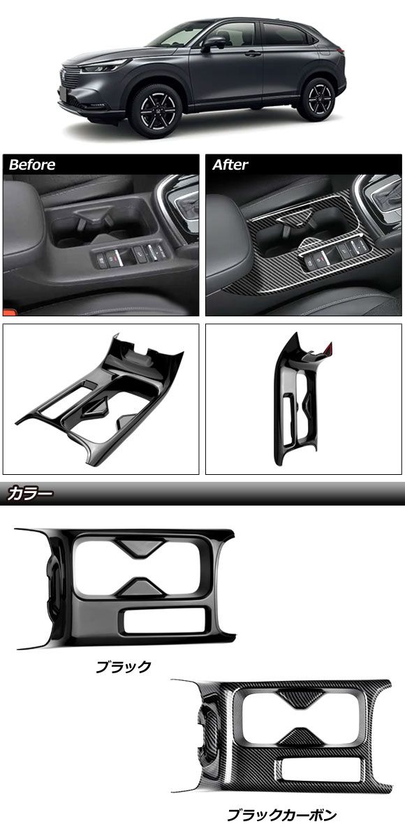 カップホルダーパネル ホンダ ヴェゼル RV系 2021年04月〜 ブラック ABS製 AP-IT3671-BK