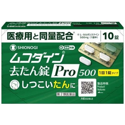 第2類医薬品 シオノギヘルスケア ムコダイン去たん錠Pro500 10錠 ※取寄せの場合あり セルフメディケーション税制対象品