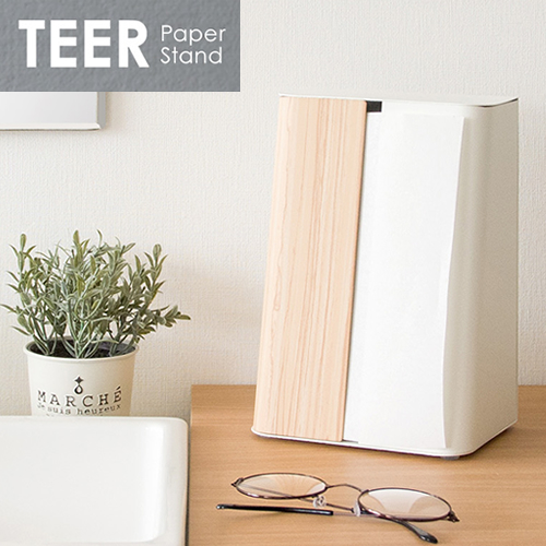上品な木目転写が特徴のスタイリッシュな『TEER(ティール)』シリーズのペーパースタンド。 縦置きのスタンドタイプなので省スペースで狭い洗面所やキッチンにも置けてサッと取り出せます。