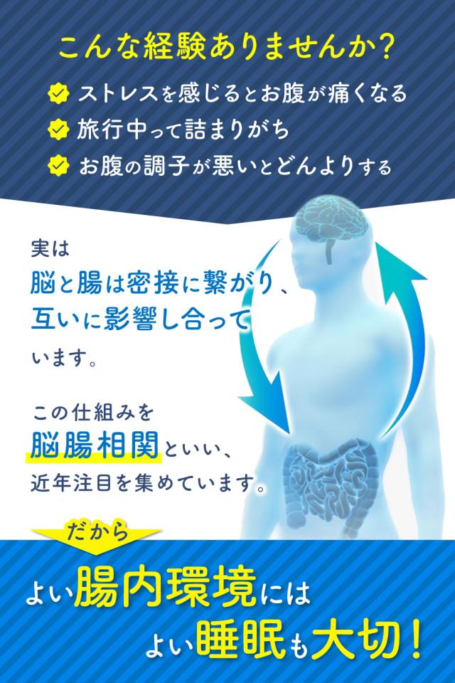 - 腸活に興味があり購入してみました。 眠りが浅いので、そこの改善にも効果を期待しています。 サイズ的に持ち運びしやすく、飲みやすい錠剤のサイズで継続しやすそうです