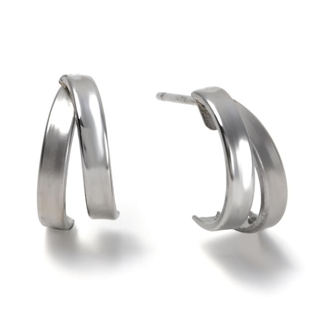 プラチナ ピアス ツイン クロス メンズ レディース 両耳