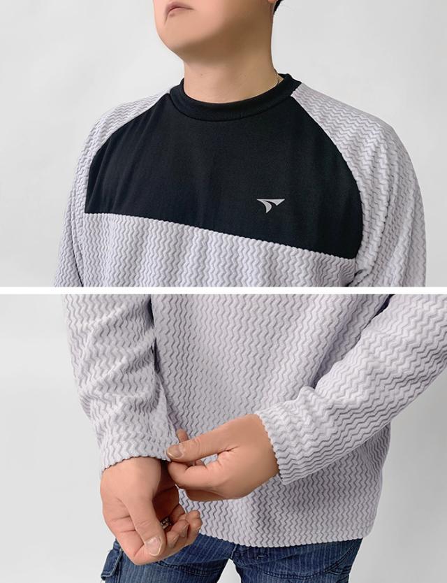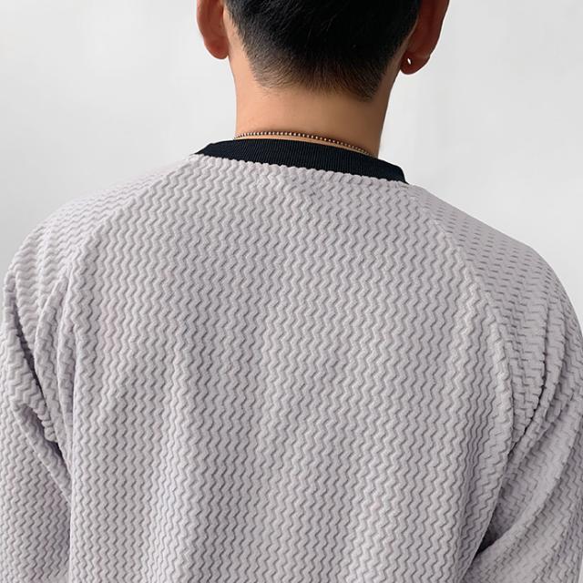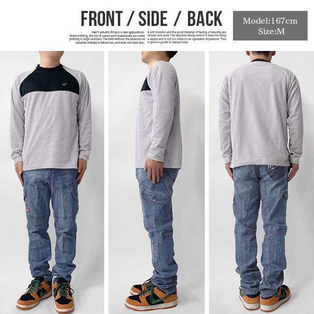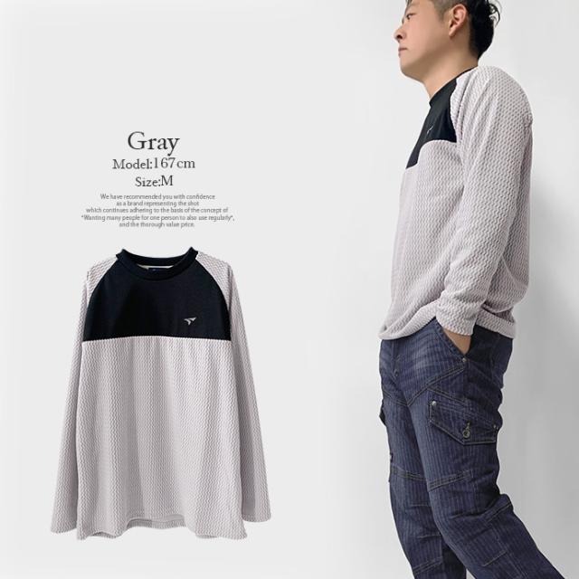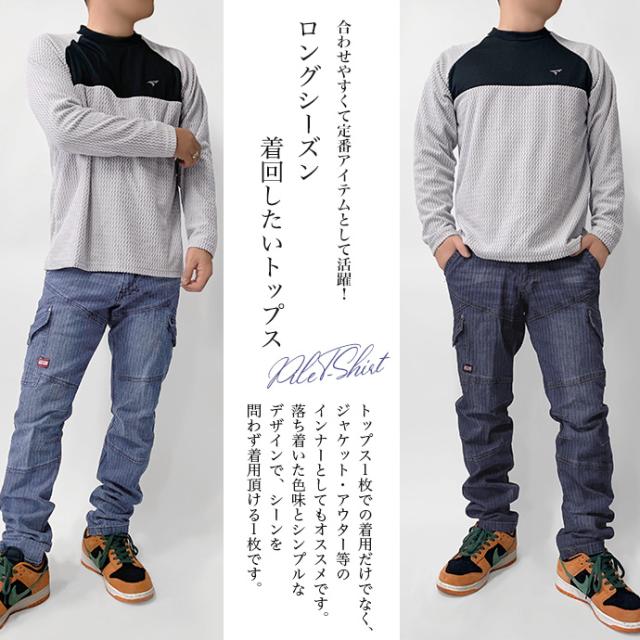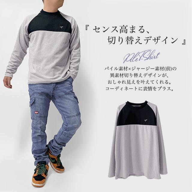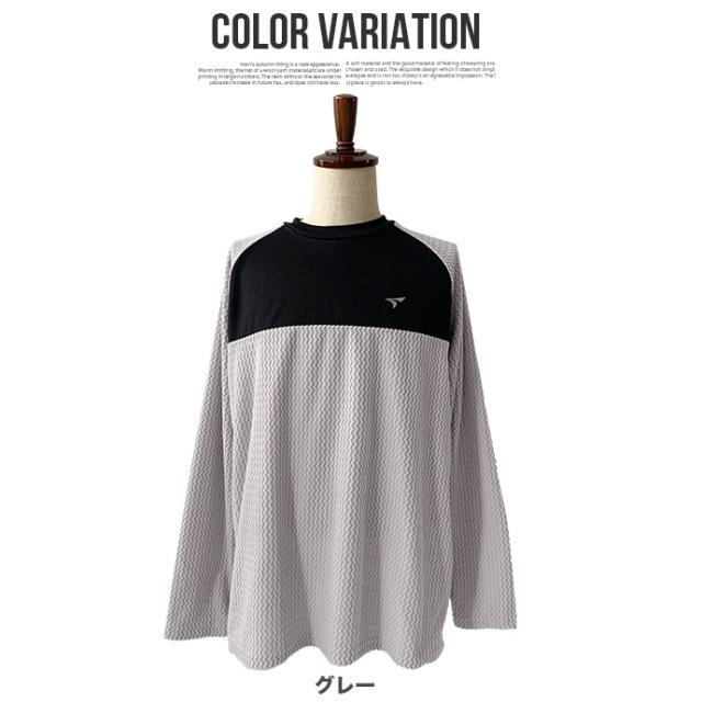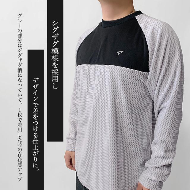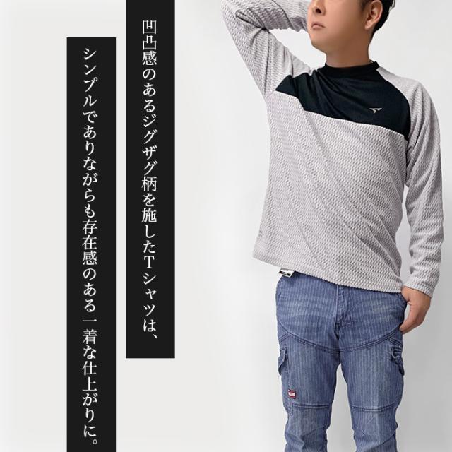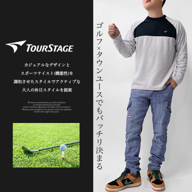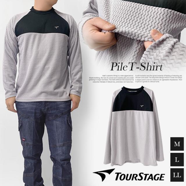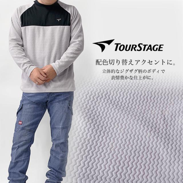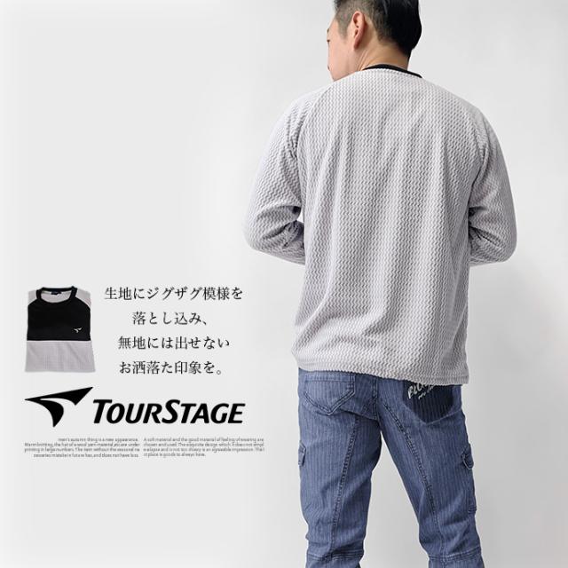 Tシャツ トップス 長袖Tシャツ パイル生地 ジャージー生地 異素材 クルーネック ジグザグ柄 スポーツ ゴルフ タウンユース カジュアル ツアーステージ TOUR STAGE 送料無料 値下げ