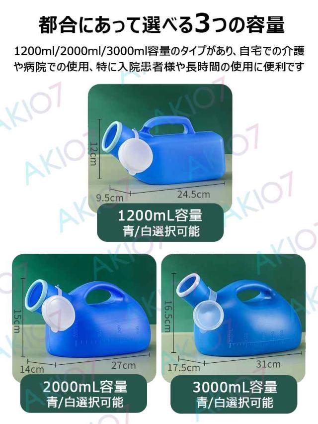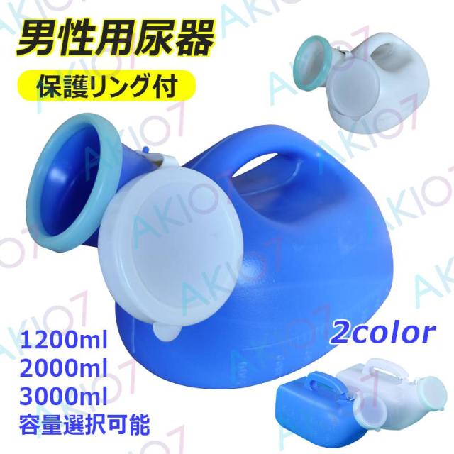 【1200ml/2000ml/3000ml選択可】尿瓶 尿器 大容量 集尿器 男性用 保護リング付き 青 白 ブルー ホワイト 口径が広い 持ち運びしやすい こぼれない 介護 キャンプ 移動 高速道路の渋滞時 長距離運転 介護用便器 高齢者用 旅行用 トイレ 介護 看護 災害 断水 トイレ