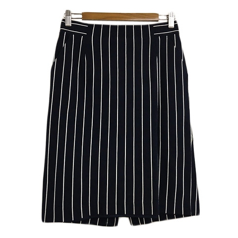 【中古】ピンキー&ダイアン ピンダイ スカート タイト 膝丈 ストライプ スリット 38 紺 白 ネイビー ホワイト