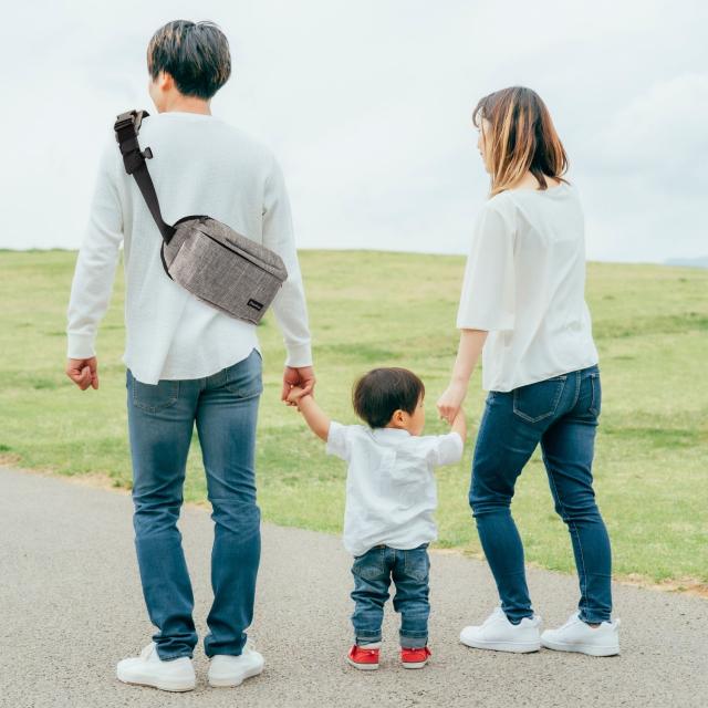 お子様の抱っこをサポートするヒップシート、ちょっとした荷物を持ち運べるボディバッグの2WAYで使えます。お出かけ用のボディバッグとして使いながら、お子様を抱っこするときだけヒップシートに早変わり。パパもママも使えるシンプルでおしゃれなデザイン。
