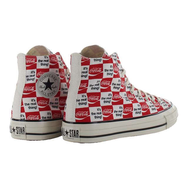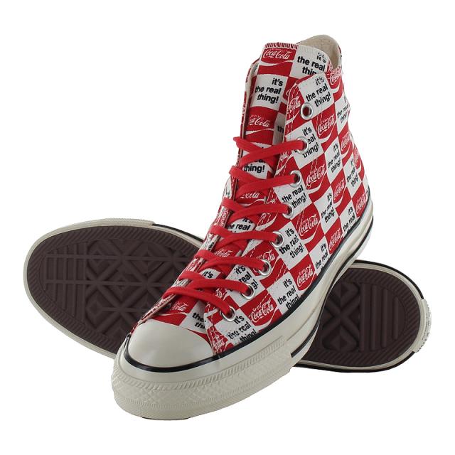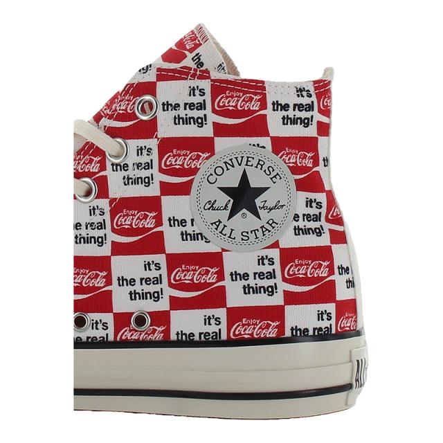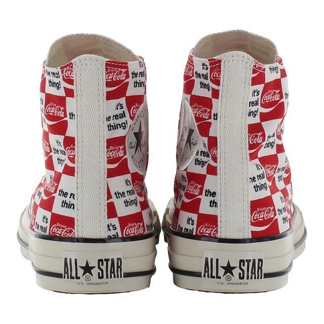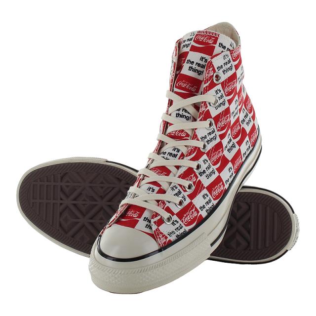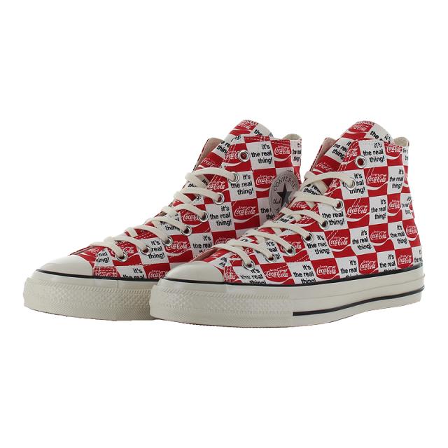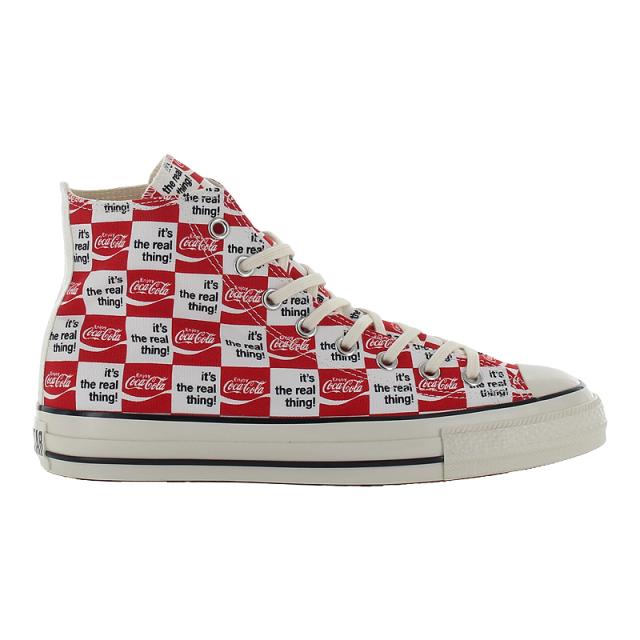 【商品特徴】 オールスター USのコラボレーションモデル・アメリカの代表的な清涼飲料水ブランドCoca-Colaとのコラボレーション・古着市場でも人気の高いCoca-Colaの70年代のアートワークをアレンジしたレトロでポップなデザイン・Coca-Colaらしいカラーリングのレッド/ホワイトにはCoca-Colaのブランドカラーのレッドのスペアシューレースを付属