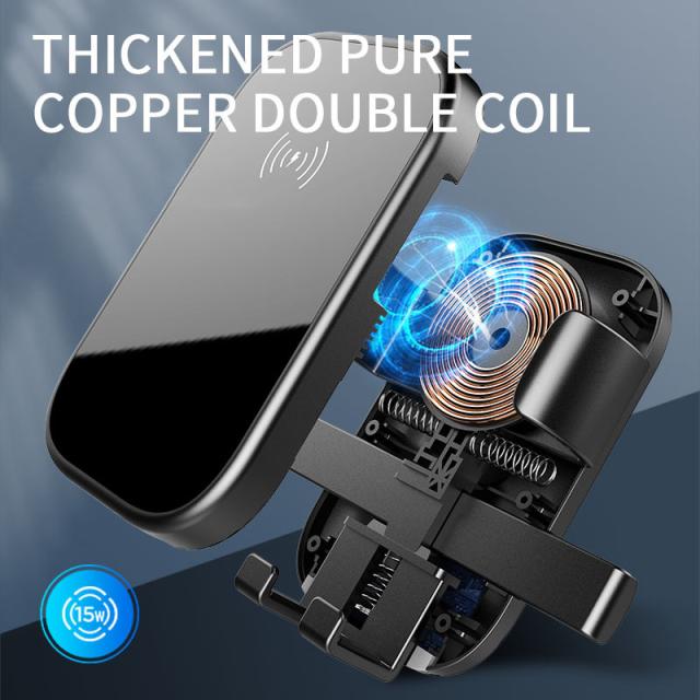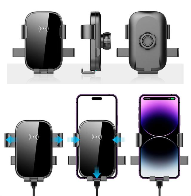 ワイヤレス 充電器 車 車載 スマホホルダー 置くだけ充電 QI 開閉式 スタンド iPhone 360度 吸盤マウンド 15W