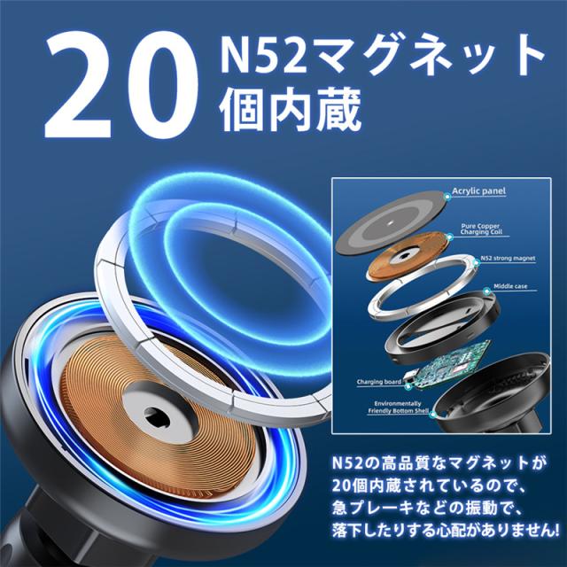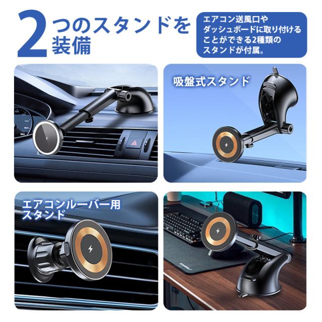 車載ホルダー 吸盤マウンド マグネット式 ワイヤレス充電器 スマホホルダー iPhone Android 車 最大15W 急速充電