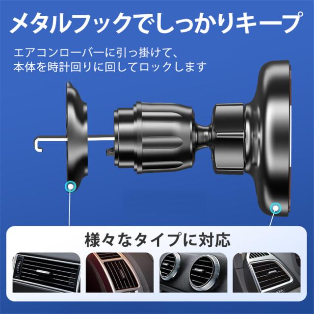 新発売、エアコン吹き出し口とダッシュボードに吸盤式2WAY簡単取付設置できるワイヤレス充電式車載ホルダーです。