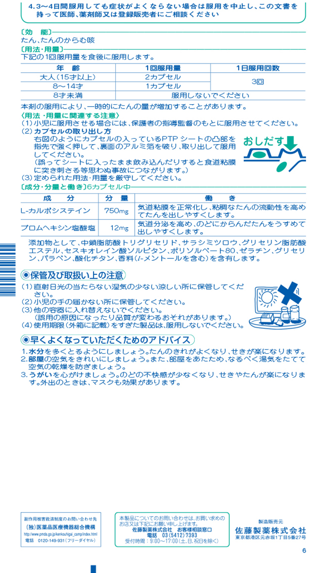 商品名 第2類医薬品 ストナ去たんカプセル18CP×2個セット セルフメディケーション対象商品 佐藤製薬 容量 18CP×2個セット メーカー 佐藤製薬 カテゴリー 医療・介護・医薬品>医薬品>のどの薬>のどの薬【第一・二類医薬品(指定第二医薬品含む)】 効果・効能 たん、たんのからむせき。 用法・用量 大人(15才以上)1回2カプセル、8〜14才1回1カプセル、いずれも1日3回食後に服用します。 セルフメディケーション税制対象 対象 区分 第二類医薬品