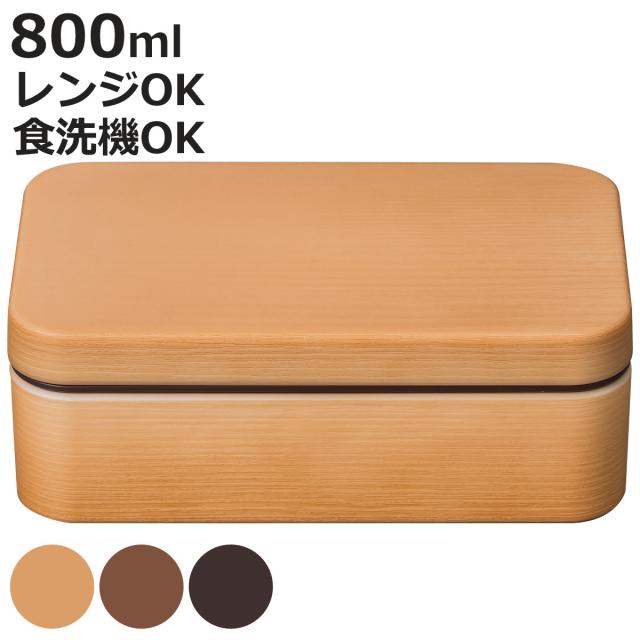 弁当箱 1段 800ml お米がくっつきにくい弁当箱 木目長角弁当箱L ( ランチボックス レンジ対応 食洗機対応 一段 大人 女性 日本製 レンジOK 食洗機OK ランチバンド付き 弁当 お弁当 木目 おしゃれ レトロ 木目調 )