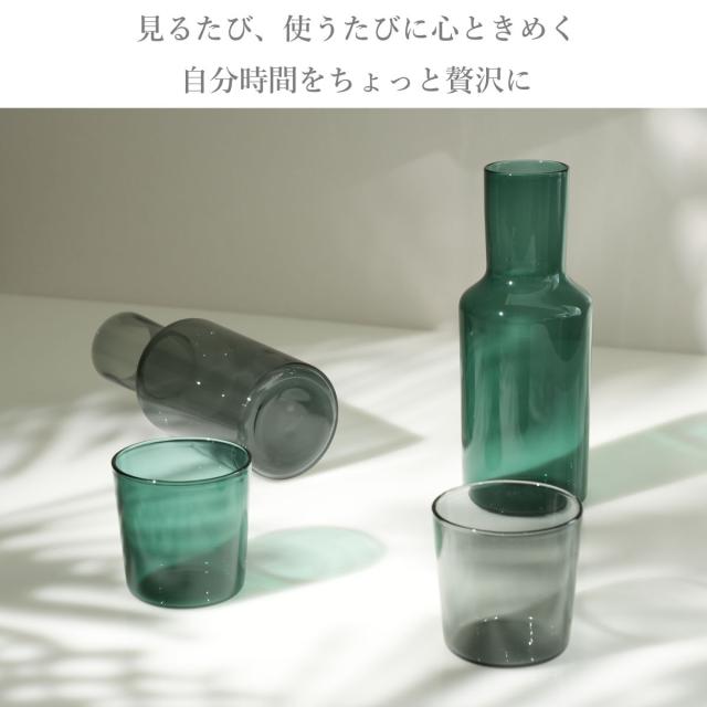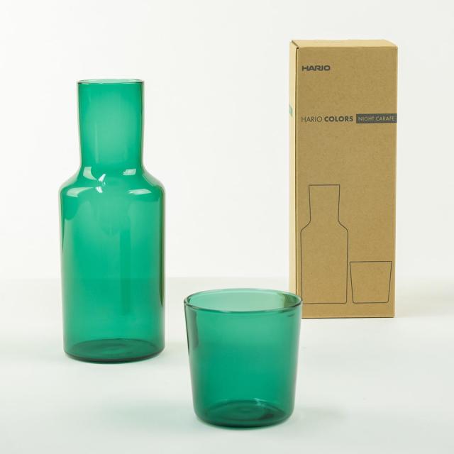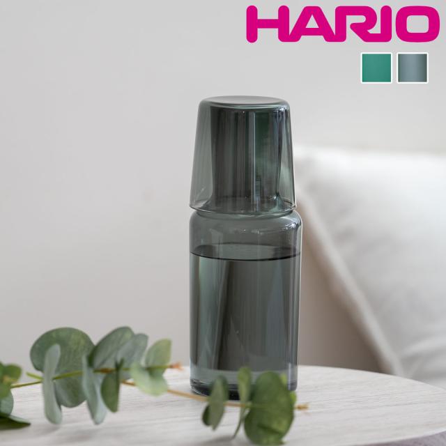 ハリオ カラフェ 600ml ナイトカラフェ HARIO COLORS 耐熱ガラス ( ピッチャー 水差し 水入れ 耐熱 ガラス製 熱湯 取っ手なし コップ付き 寝室 就寝時 水分補給 おしゃれ )