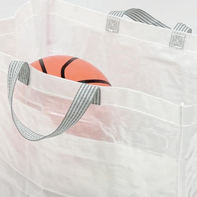 開口部が広く、ダンボールやスポーツ用品、おもちゃなどを収納できます。玄関だけではなく、洗濯物用のバスケットとしても活用できます。底部にはマチが付いており、バスケットが自立して収納物を安定させることができます。使わないときは折りたたんで、場所を取らずコンパクトに保管できます。