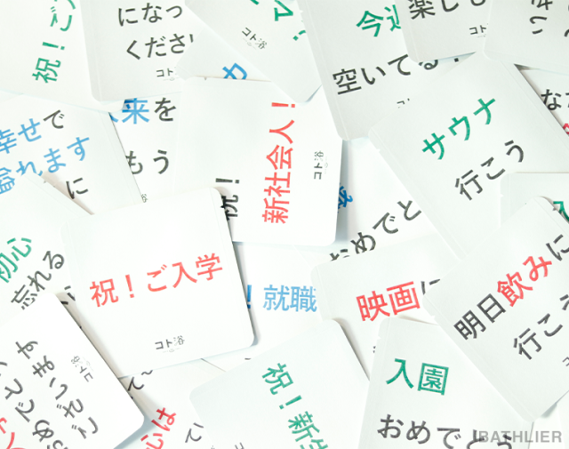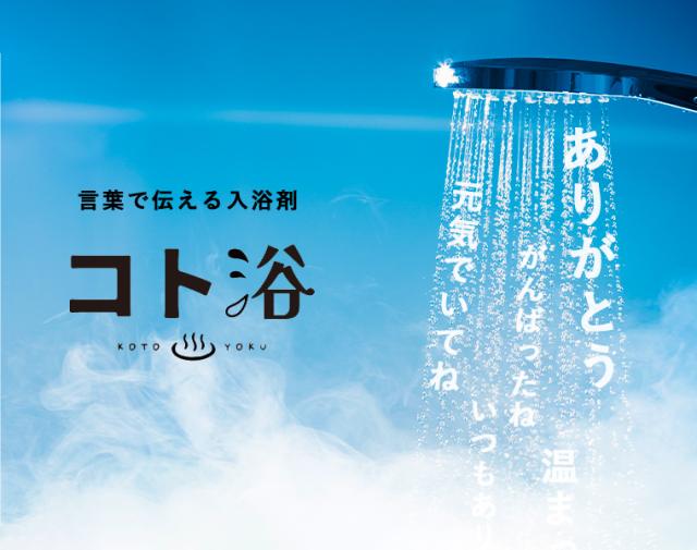 「言葉を浴びる」「言葉に浸かる」「言葉を贈る」を融合させた新浴感※ 。 入浴には古くから温泉浴をはじめ、サウナ浴やシャワー浴などいろいろな種類があり医療や衛生的な健康習慣として広く認知されてきましたが、そんな入浴に気持ちを伝える「言葉」をプラスするから「コト浴」なのです。日持ちがするから贈る時期を選ばず、プチプラギフトとしても手頃でそのまま渡してもかわいいパッケージ、 贈らない理由が見当たらないほどオススメしたいお風呂のソムリエ(バスリエ)からの提案です。