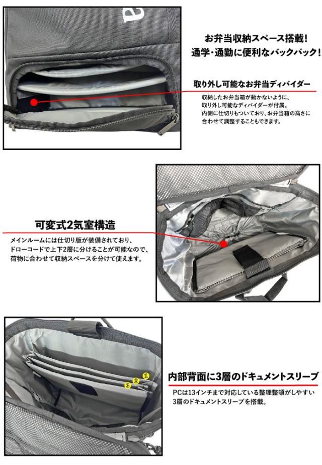 洗濯可能なお弁当用ディバイダー付きで、通勤・通学やビジネスシーンにぴったり!