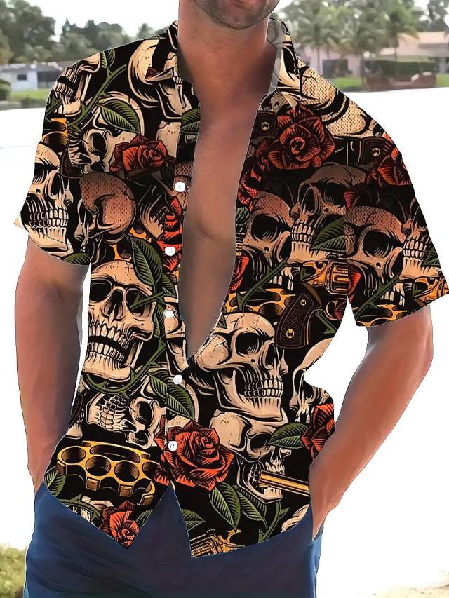 薔薇×ドクロ 総柄 アロハシャツ 050 半袖 シャツ 柄シャツ ヤクザ ヤンキー 悪羅悪羅 オラオラ系 服 派手 夏物 メンズ ファッション ハワイアンシャツ 大きいサイズ
