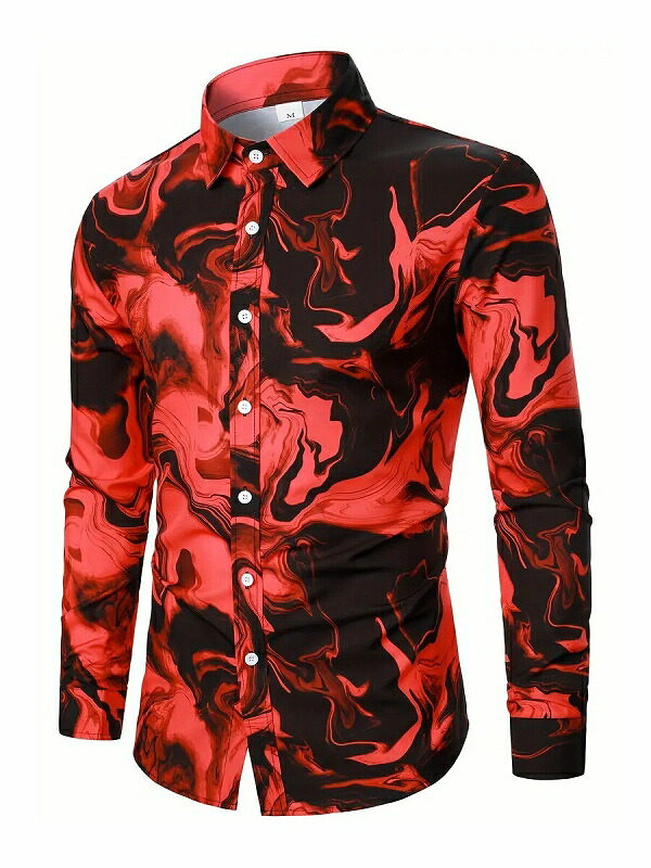 マーブル柄 長袖シャツ 赤黒 061 Yシャツ ドレスシャツ ヤクザ ヤンキー 悪羅悪羅 オラオラ系 ホスト スーツ スタイル 服 派手 メンズ ファッション