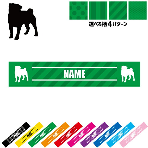 「パグ」犬種別ドッグシルエット 名入れマフラータオル タオルマフラー タオマフ スポーツタオル イベントタオル フェスタオル 首掛け ストライプ ドット 水玉 柄タオル ポリエステル ネックタオル ピクトグラム お揃い 部活 応援グッズ 応援マフラー 記念品 名入れグッズ
