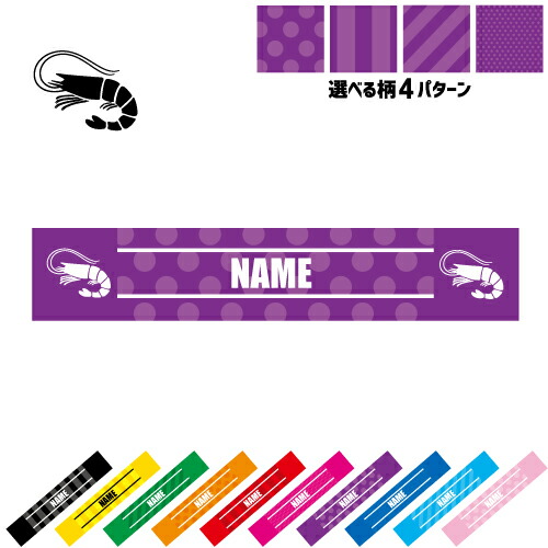 「エビ」名入れマフラータオル タオルマフラー タオマフ スポーツタオル イベントタオル フェスタオル 首掛け ストライプ ドット 水玉 柄タオル ネックタオル 海老、甲殻類、shrimp、エビフライ ピクトグラム お揃い 部活 応援グッズ 応援マフラー 記念品 名入れグッズ